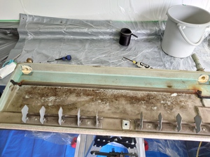 工場に設置されている天井吊型エアコンのクリーニングです。